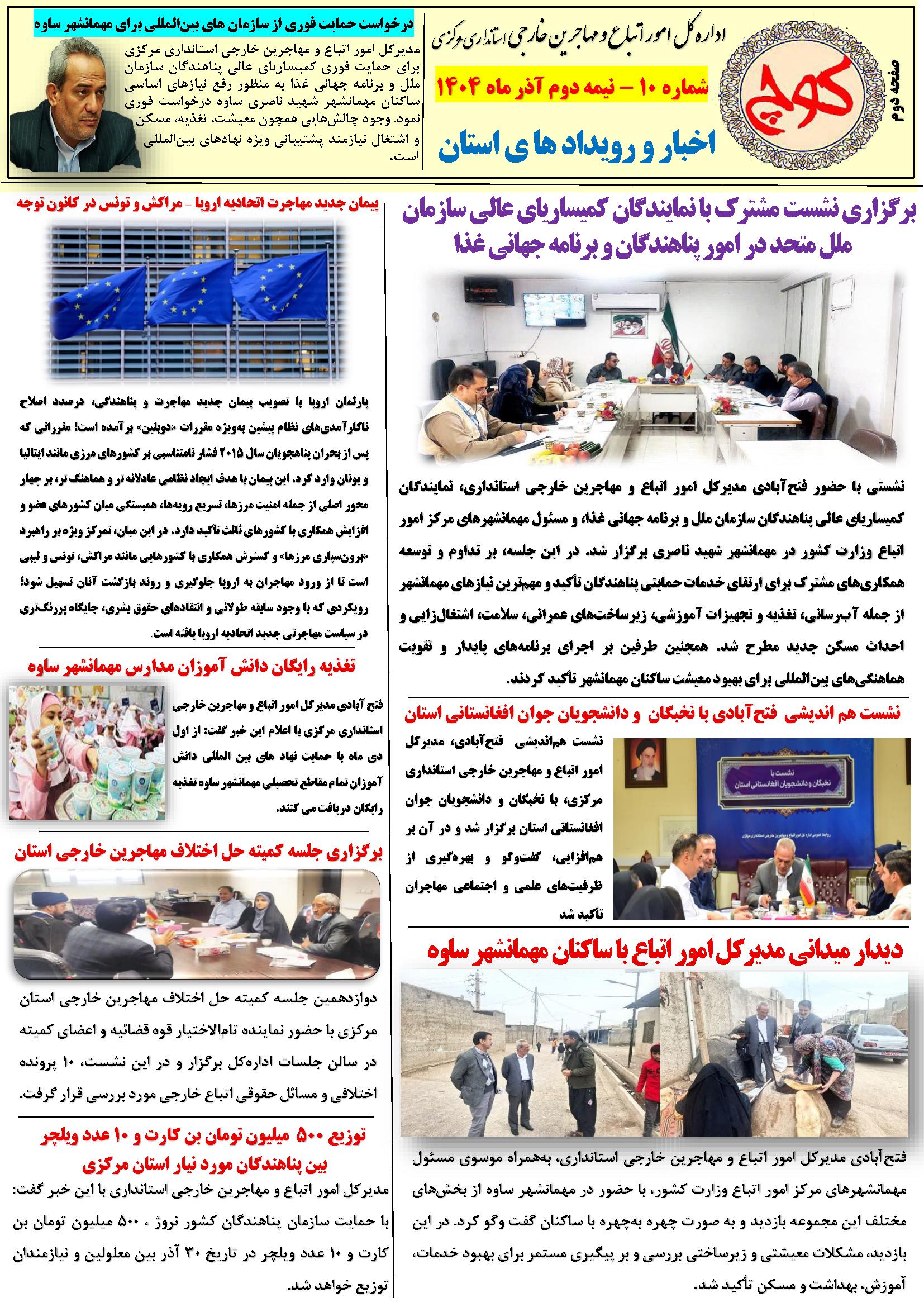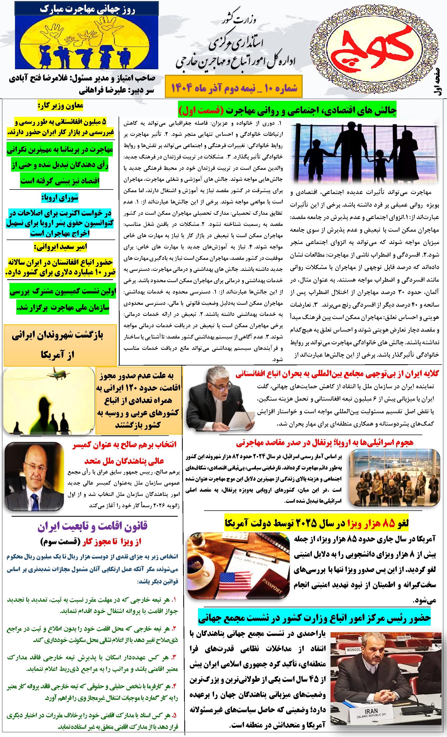 دهمین شماره نشریه کوچ ۰۳ دی ۱۴۰۴ | ۰۹:۲۱ کد : ۵۷۵۲۰ اطلاعیه ارسال به دیگران نام شما ایمیل شما ایمیل دریافتکننده ارسال انصراف تعداد بازدید:۴۲۷ دهممین شماره نشریه کوچ، توسط دفتر امور اتباع و مهاجرین خارجی استان مرکزی منتشر گردید.
