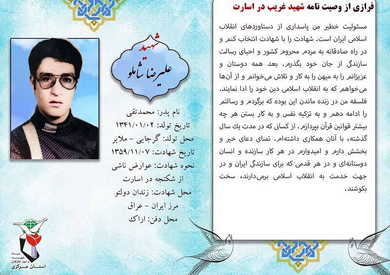 فرازی از وصیت نامه شهدا ۰۵ بهمن ۱۴۰۴ | ۰۹:۴۵ کد : ۵۷۶۸۳ اطلاعیه ارسال به دیگران نام شما ایمیل شما ایمیل دریافتکننده ارسال انصراف تعداد بازدید:۵۲۵ فرازی از وصیت نامه شهدا فرازی از وصیت نامه شهید بزرگوار علیرضا شاملو :